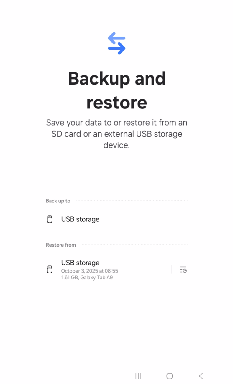 The time may vary depending on the size of the backup and the speed of the USB device.